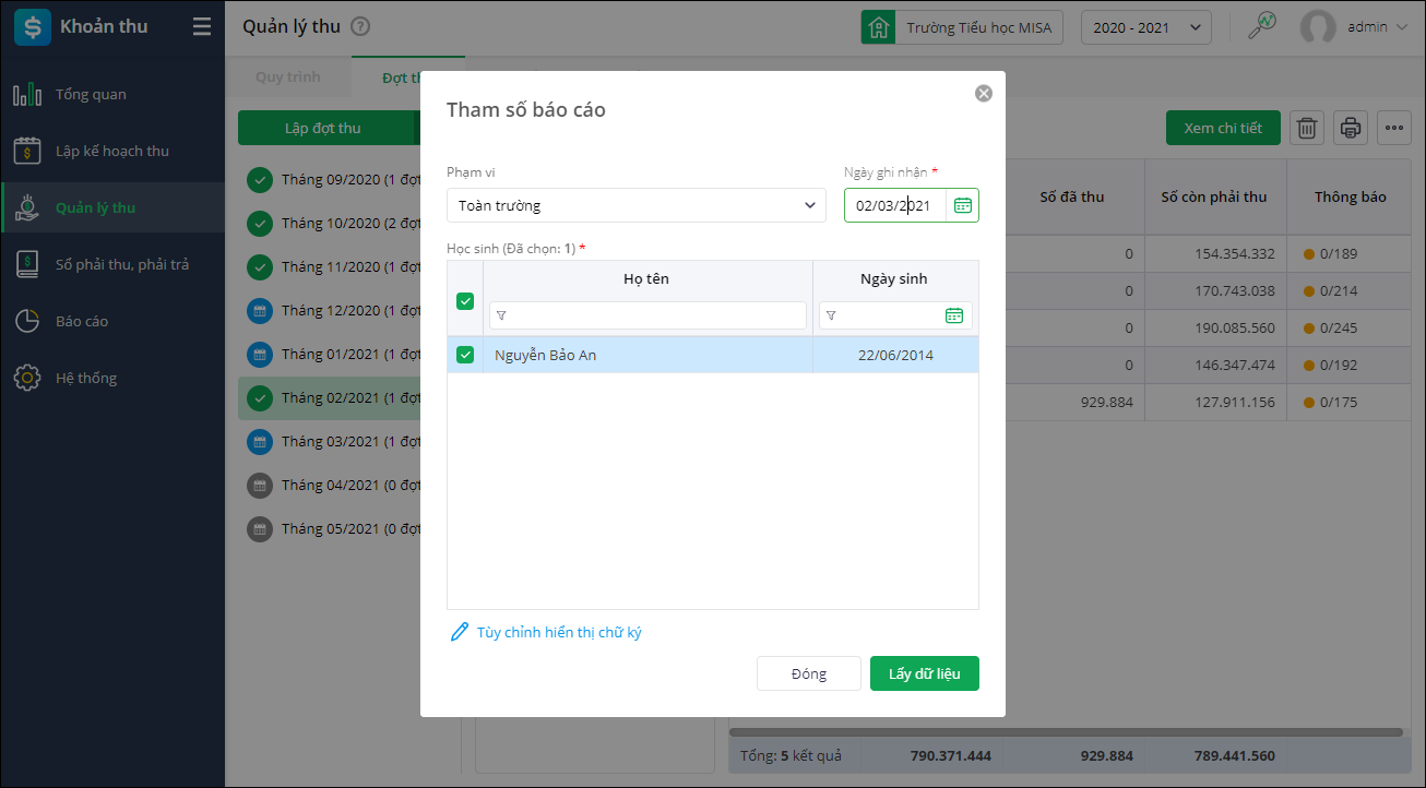 - Từ phiên bản R108: Bổ sung mẫu biên lai chi trả để làm bằng chứng đã chi trả với phụ huynh đồng thời để hạch toán kế toán.