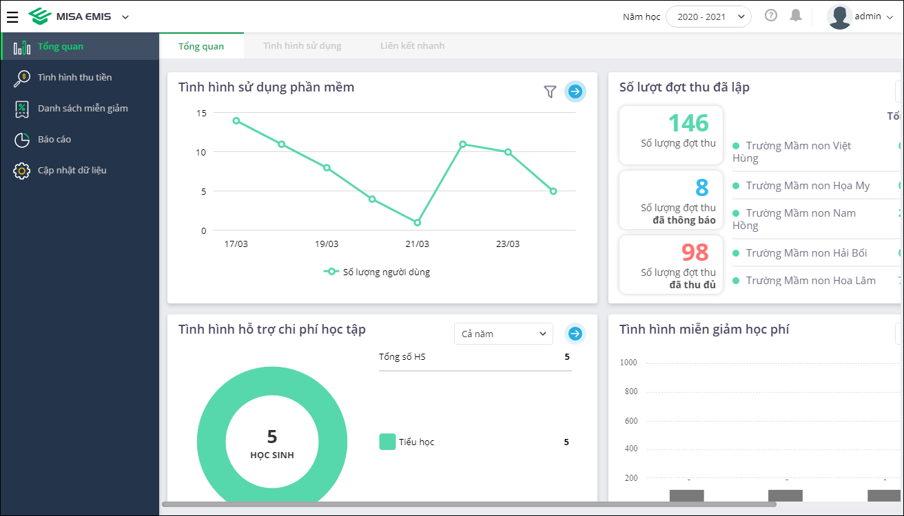 - Tình hình sử dụng phần mềm và số lượng đợt thu đã lập