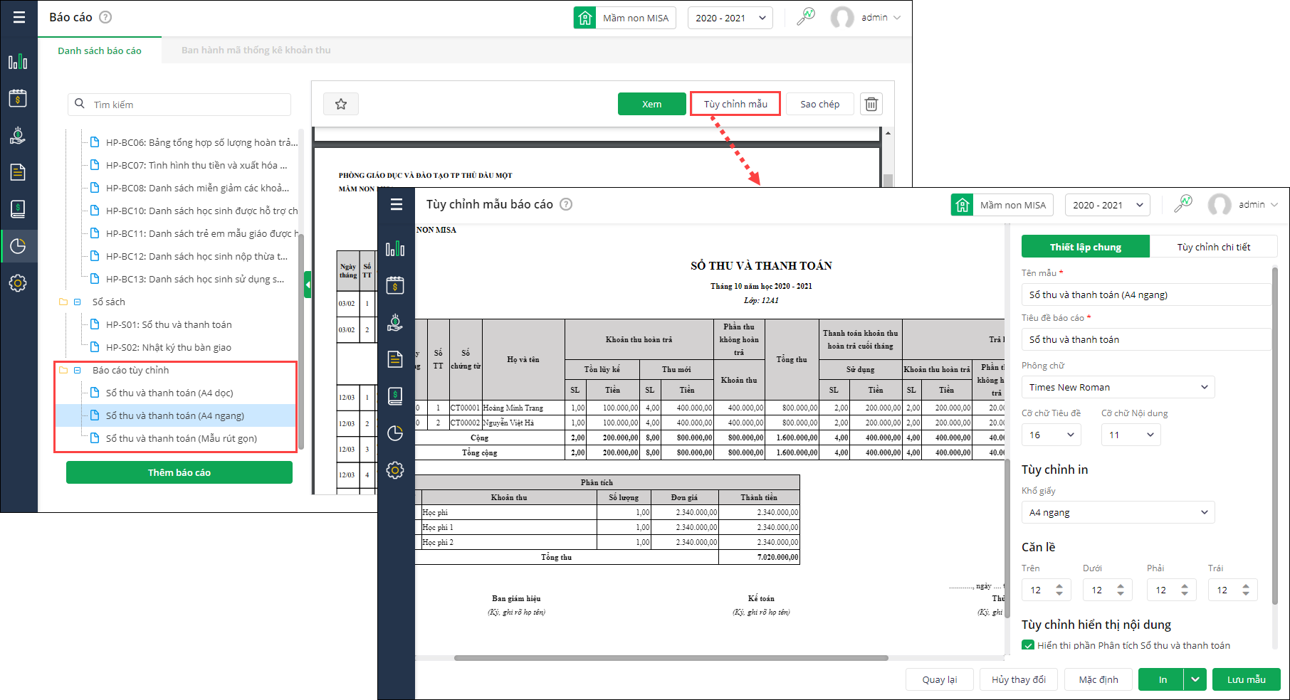 - Từ phiên bản R110: Kế toán dễ dàng tùy chỉnh báo cáo Sổ thu và thanh toán theo đúng mẫu của đơn vị.