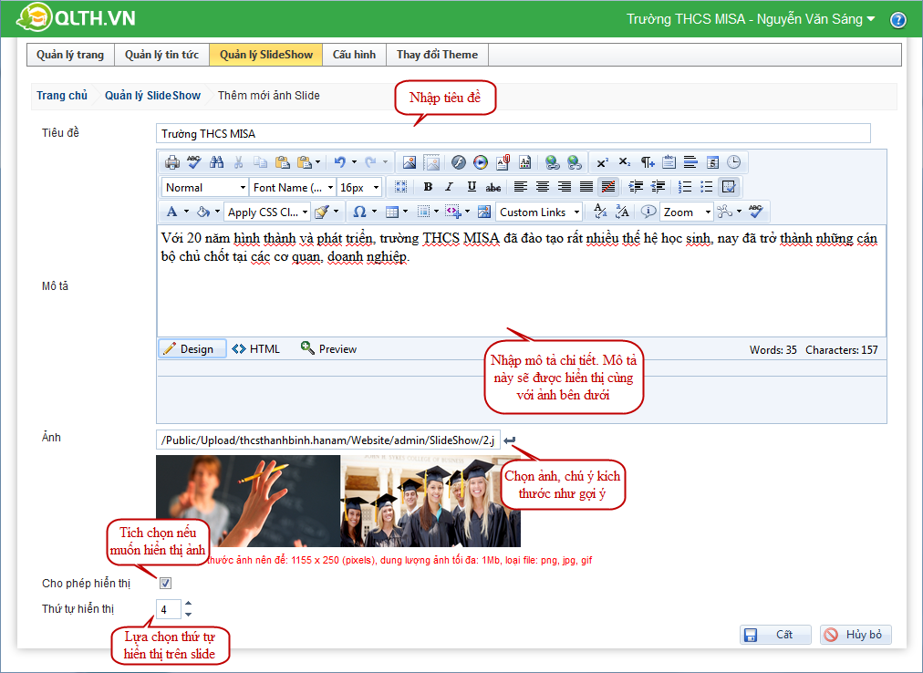 - Vào Quản lý SlideShow, nhấn Thêm mới