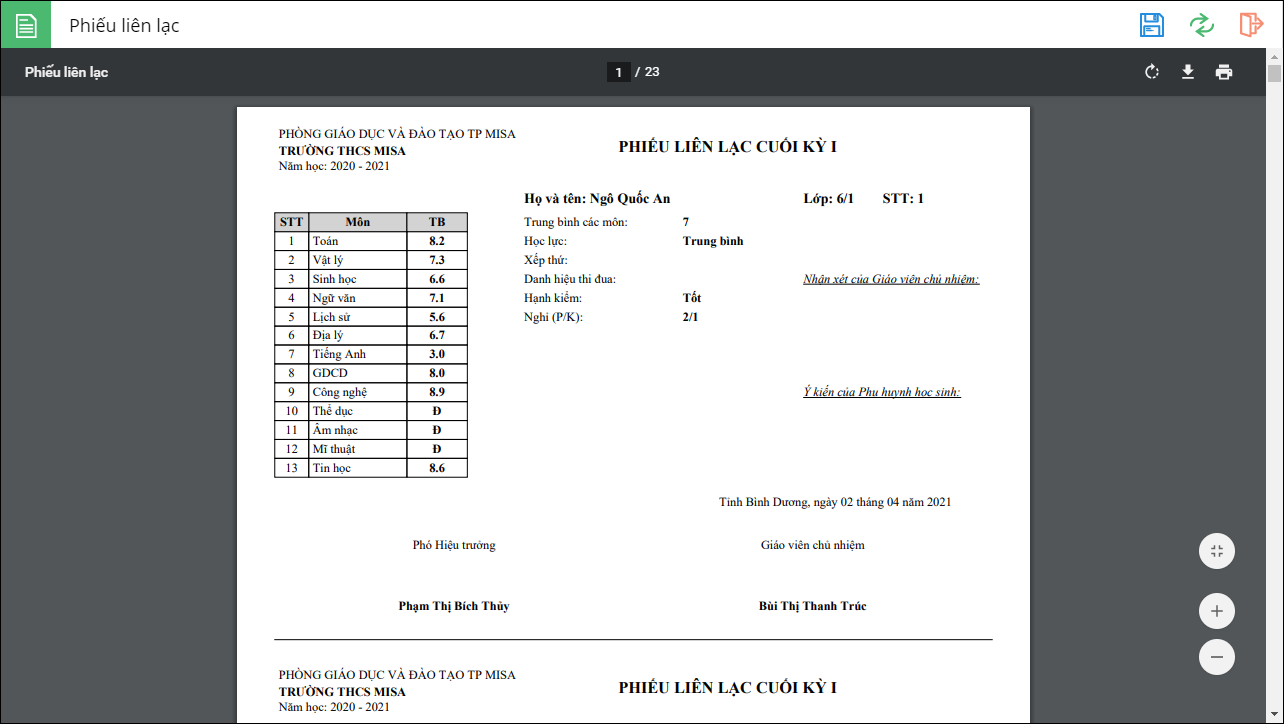 Xem hướng dẫn chi tiết in phiếu liên lạc tại đây.