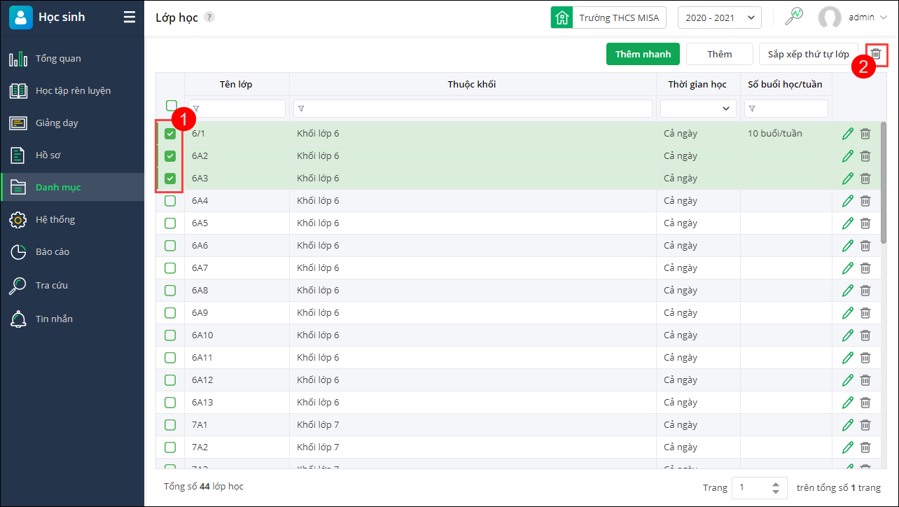 - Từ phiên bản R110: Phần mềm cho phép xóa nhanh danh sách lớp học, giáo viên.