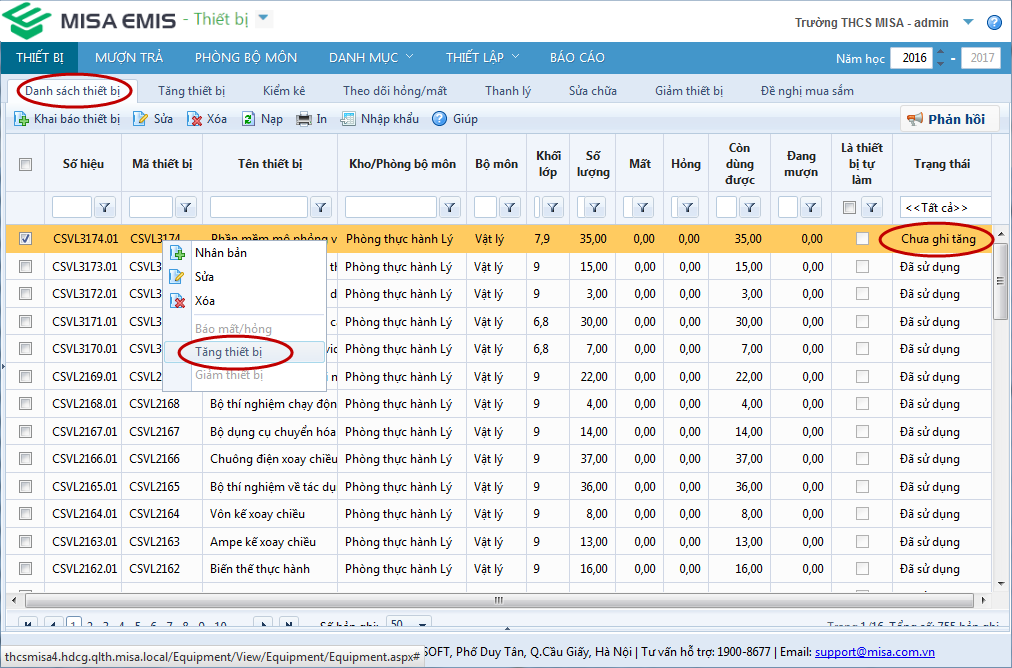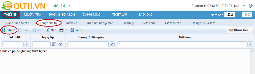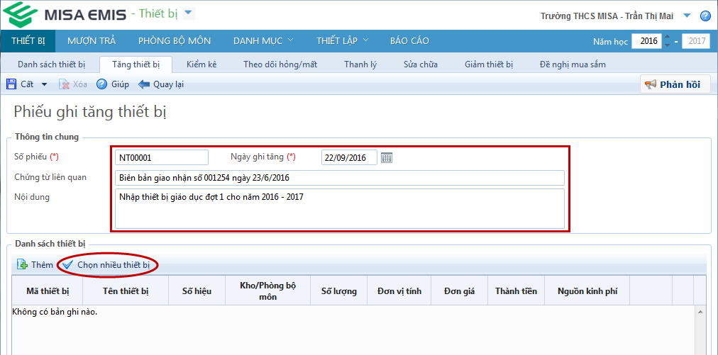 Để thực hiện ghi tăng thiết bị giáo dục, thực hiện như sau: