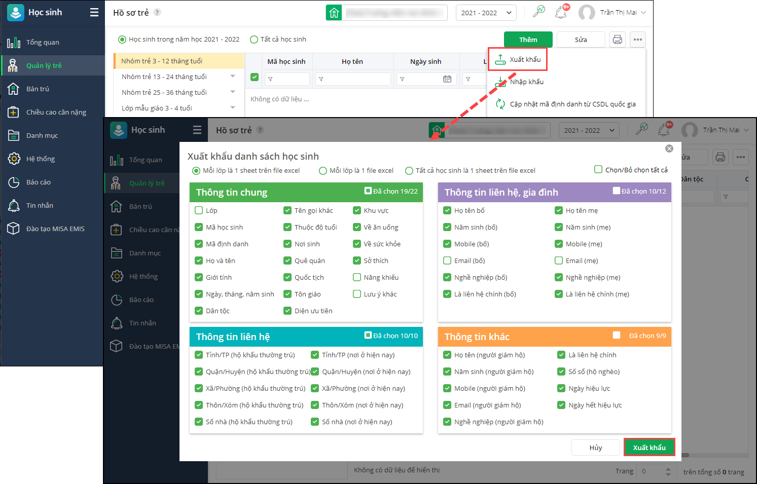 - Tại phân hệ Học sinh\Quản lý trẻ\Hồ sơ trẻ.