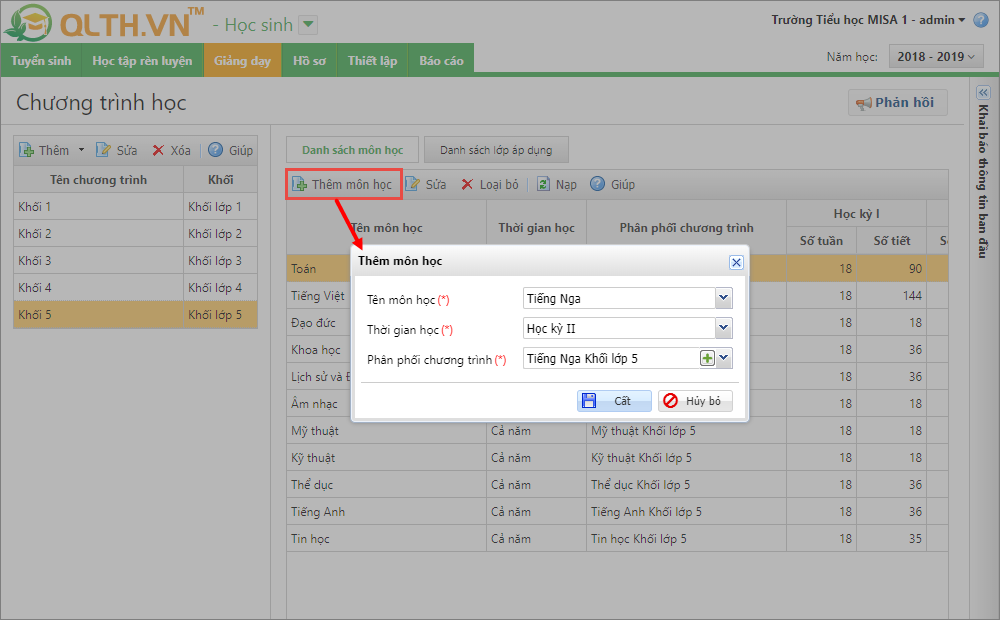 - Thêm một số môn học phù hợp với chương trình học của nhà trường: