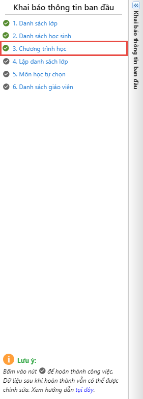 1. Nhấn vào biểu tượngtại phần Khai báo thông tin ban đầu, chọn tab 3. Chương trình học.
