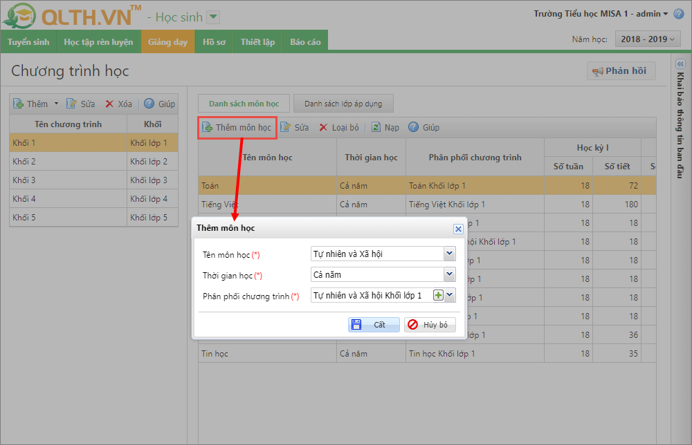 - Nhấn Thêm môn học.