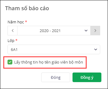 - In báo cáo theo Phạm vi: Khối/lớp/Học sinh