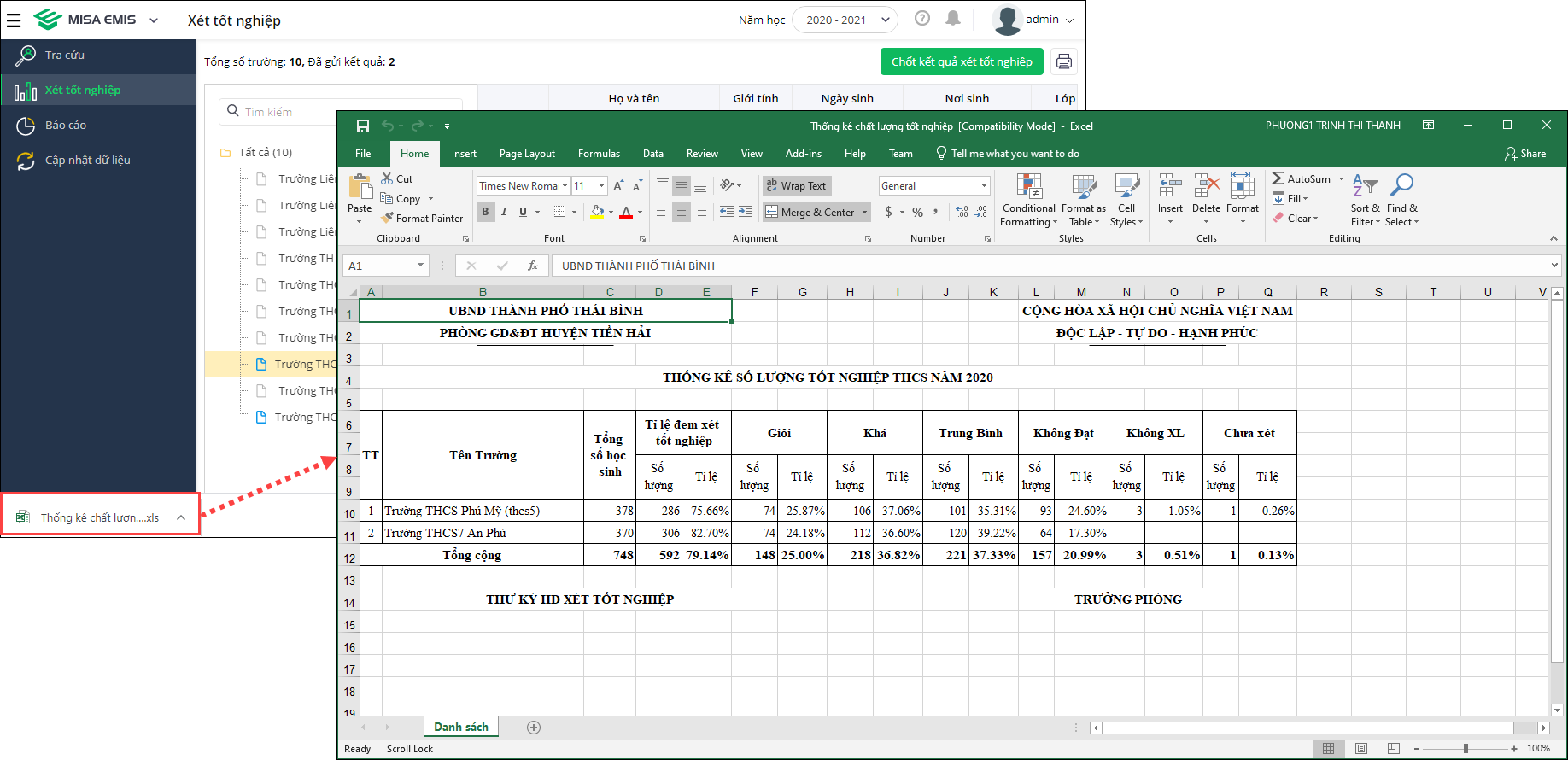 - Từ phiên bản R111: Bổ sung báo cáo Thống kê chất lượng xét tốt nghiệp dành cho cấp Phòng/Sở.