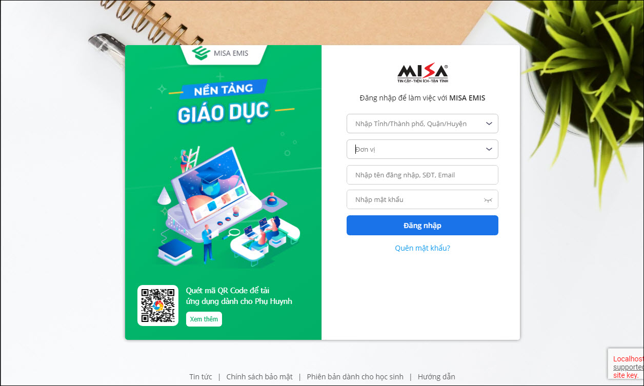 - Đăng nhập bằng tài khoản được MISA EMIS bàn giao cho cán bộ phụ trách tuyển sinh đơn vị.
