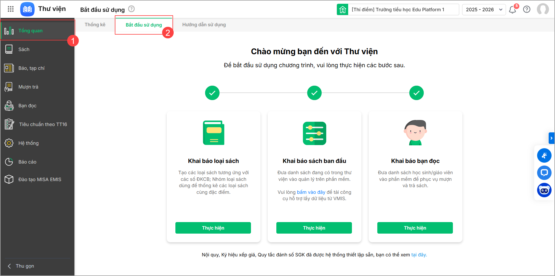 Đưa danh sách sách đang có trong thư viện vào quản lý trên phần mềm. Xem hướng dẫn chi tiết tại đây.