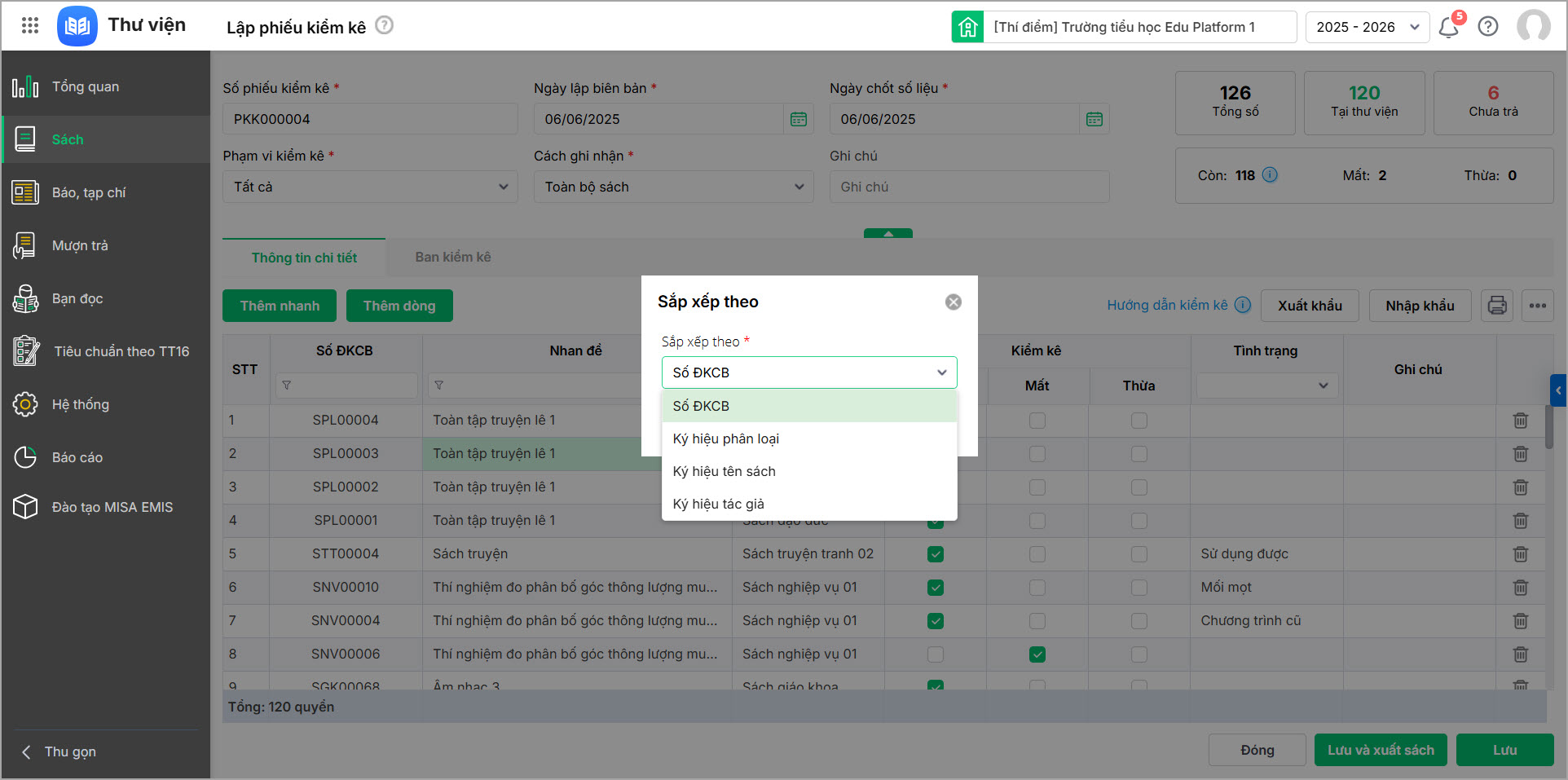 - Xác định phạm vi kiểm kê, cách ghi nhận Chỉ sách bất thường/Toàn bộ sách.