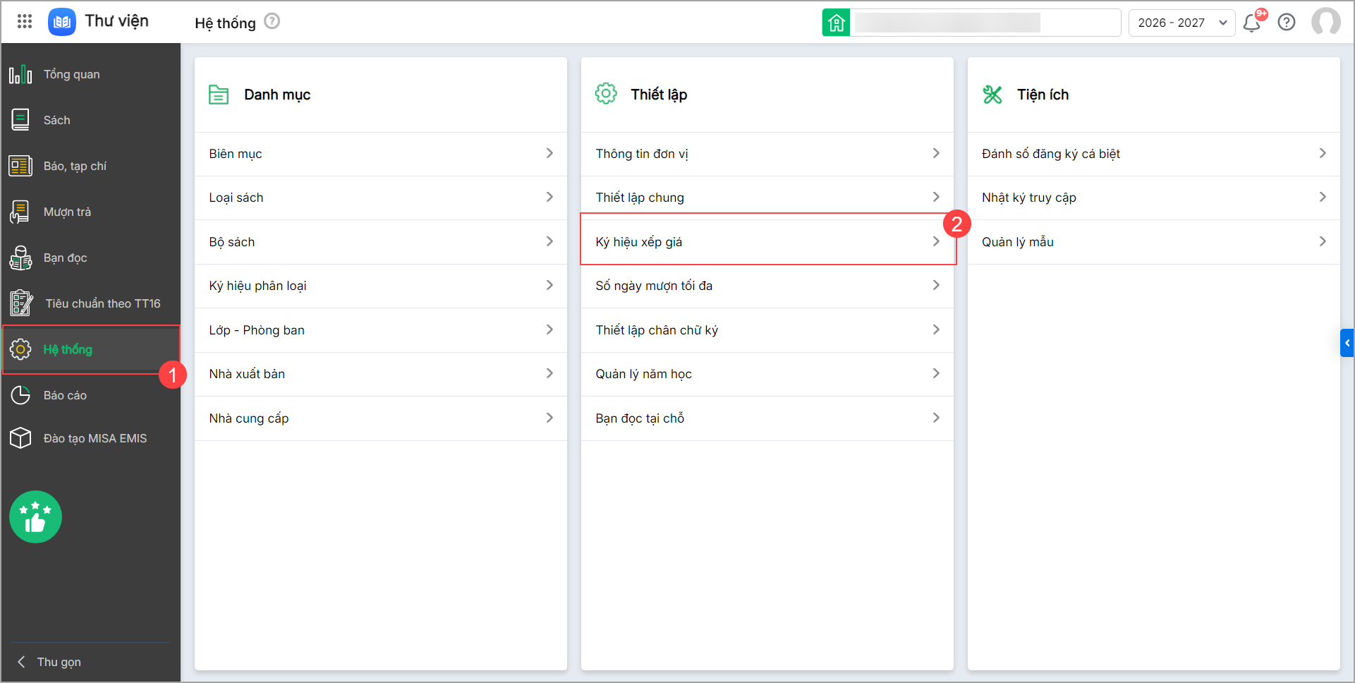 - Nhấn Hệ thống\Ký hiệu xếp giá để thiết lập các ký hiệu xếp giá cho tài liệu.