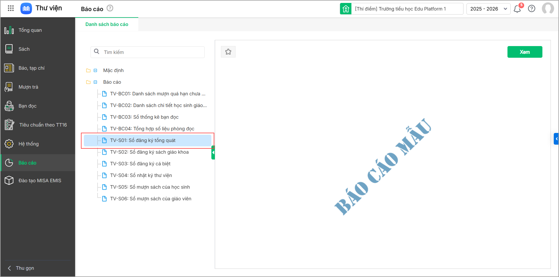 - Nhấp đôi đúp vào báo cáo cần xem trên danh sách hoặc chọn báo cáo trên danh sách, nhấn Xem báo cáo.