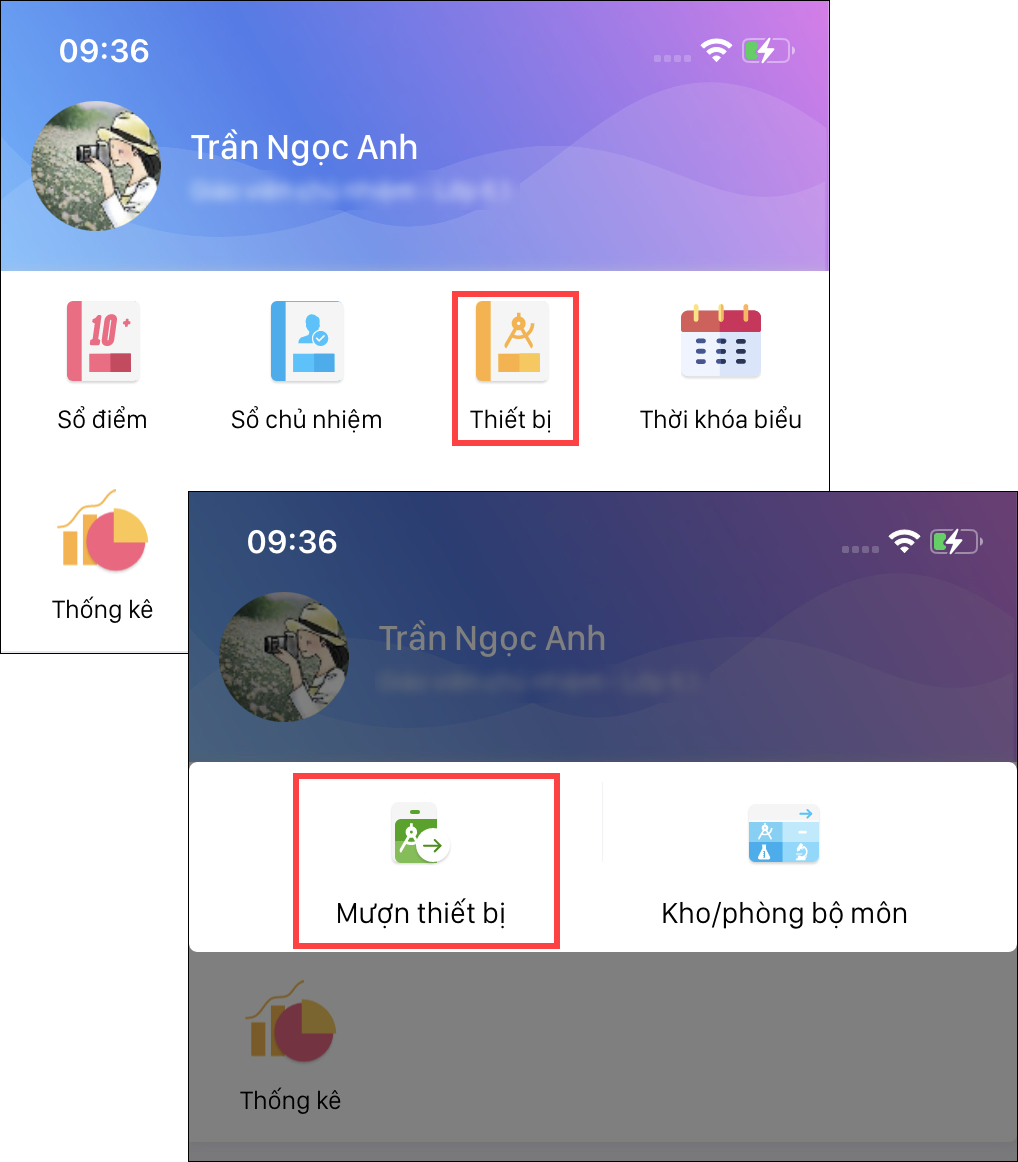 Cán bộ thiết bị ghi trả/hủy ghi trả thiết bị giáo viên mượn mọi lúc, mọi nơi ngay trên ứng dụng SISAP.