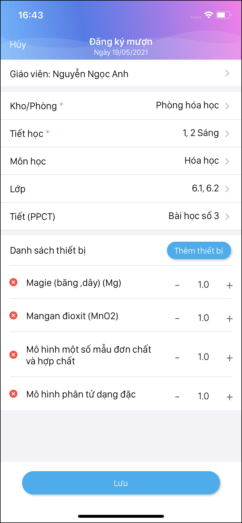 Cán bộ thiết bị lập hộ phiếu đăng ký mượn thiết bị cho giáo viên ngay trên điện thoại, mọi lúc, mọi nơi.