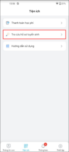 - Vào Tiện ích, chọn Tra cứu hồ sơ tuyển sinh để tra cứu tình trạng hồ sơ tuyển sinh của con.