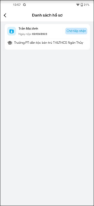 - Ứng dụng trả ra hồ sơ của con kèm trạng thái hồ sơ tương ứng hiển thị thông tin hồ sơ: