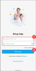 - Nhập số điện thoại và mật khẩu tài khoản đã tạo tại bước nộp hồ sơ tuyển sinh. Nhấn Đăng nhập.