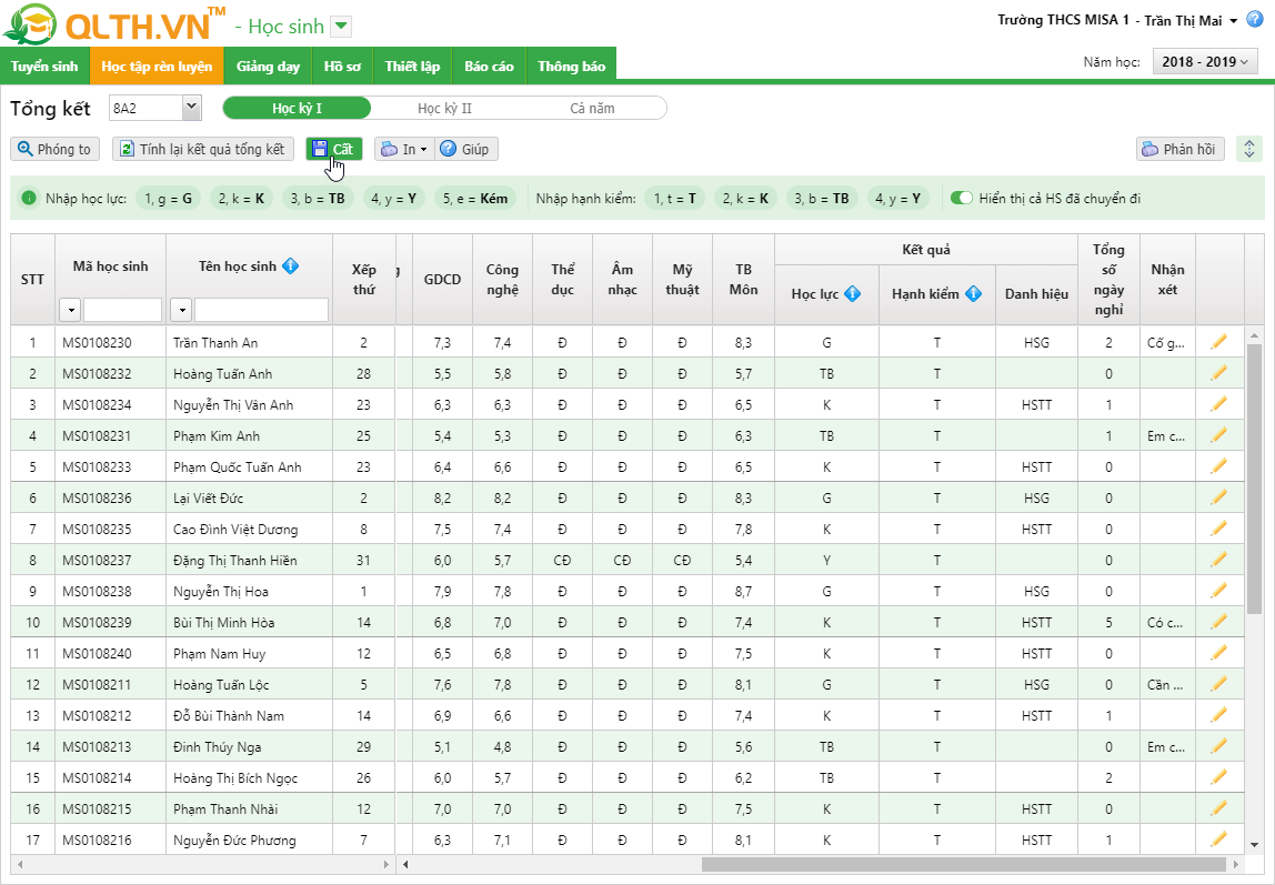 • Sau khi hoàn tất quá trình tổng kết cho học sinh anh/chị nhấn Cất.