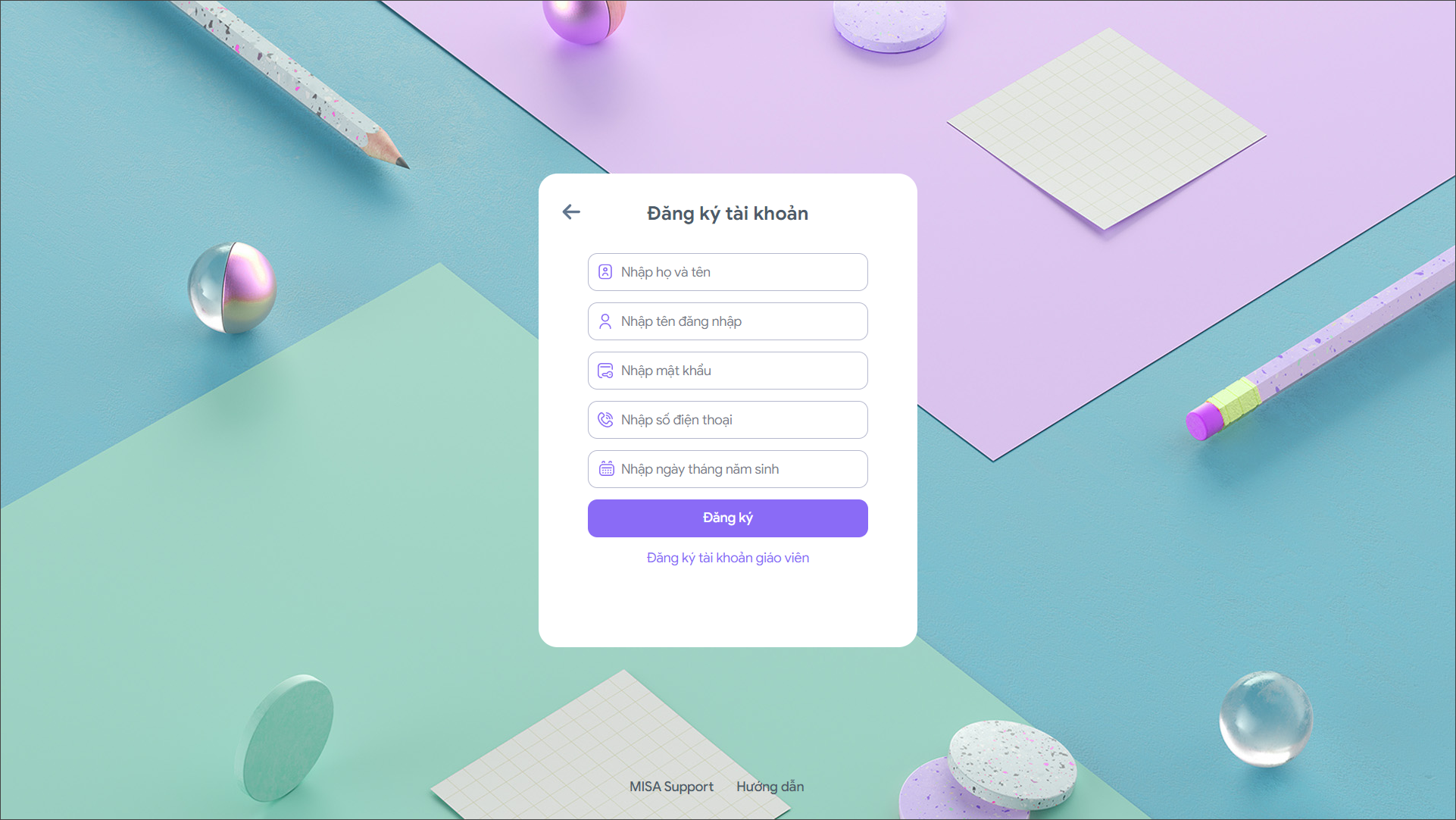 - Họ và tên, Tên đăng nhập: Học sinh nhập học và tên, tên đăng nhập