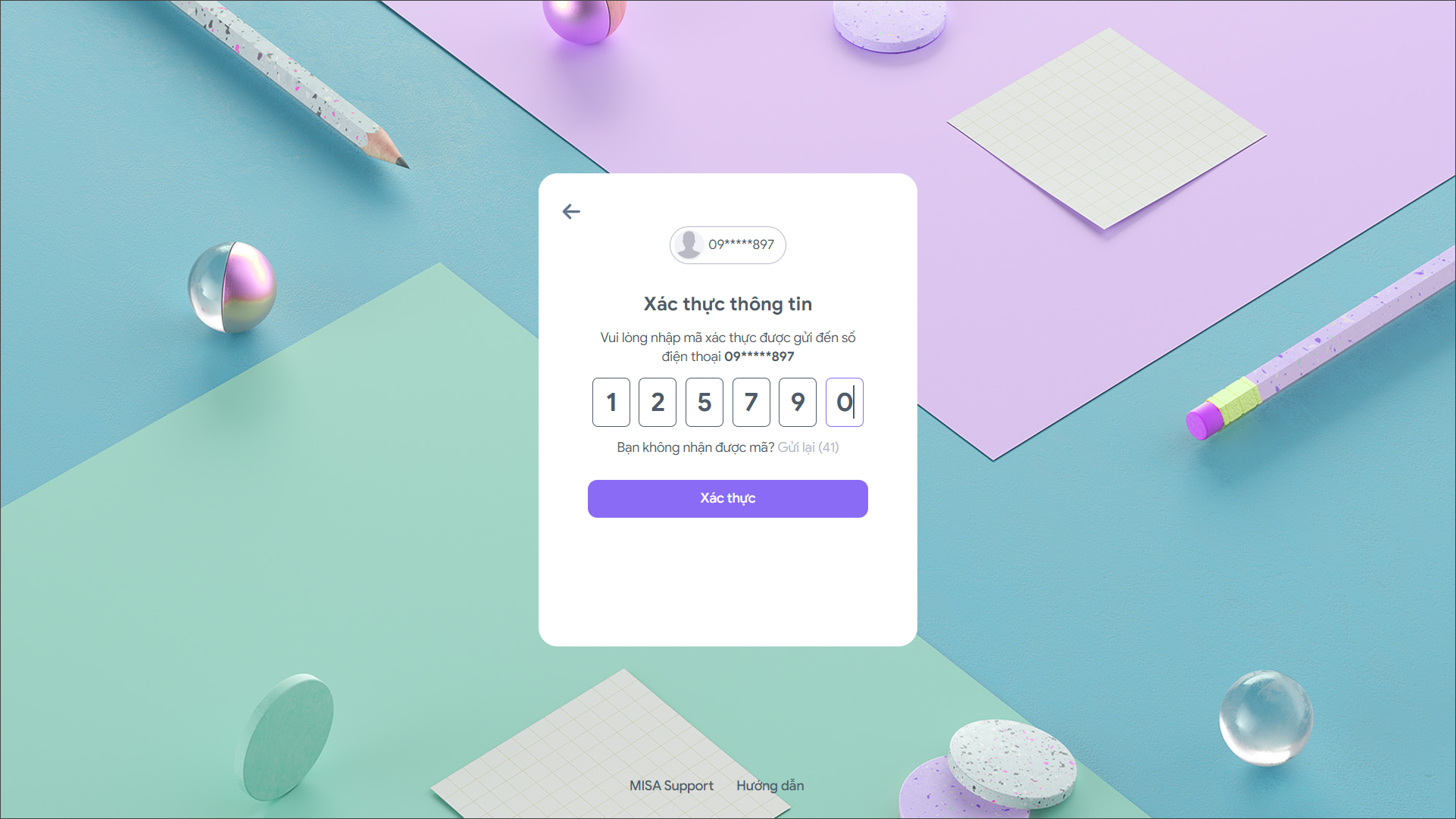 Bước 4: Nhập mã xác thực được gửi về số điện thoại bạn đăng ký.