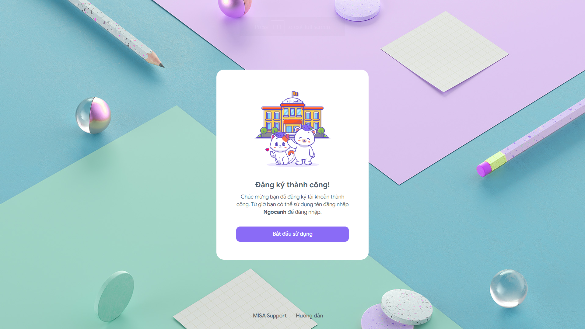 Bước 5: Nhấn Xác thực. Khi đăng ký thành công có thể chọn Bắt đầu sử dụng để trải nghiệm cùng EMIS Ôn tập.