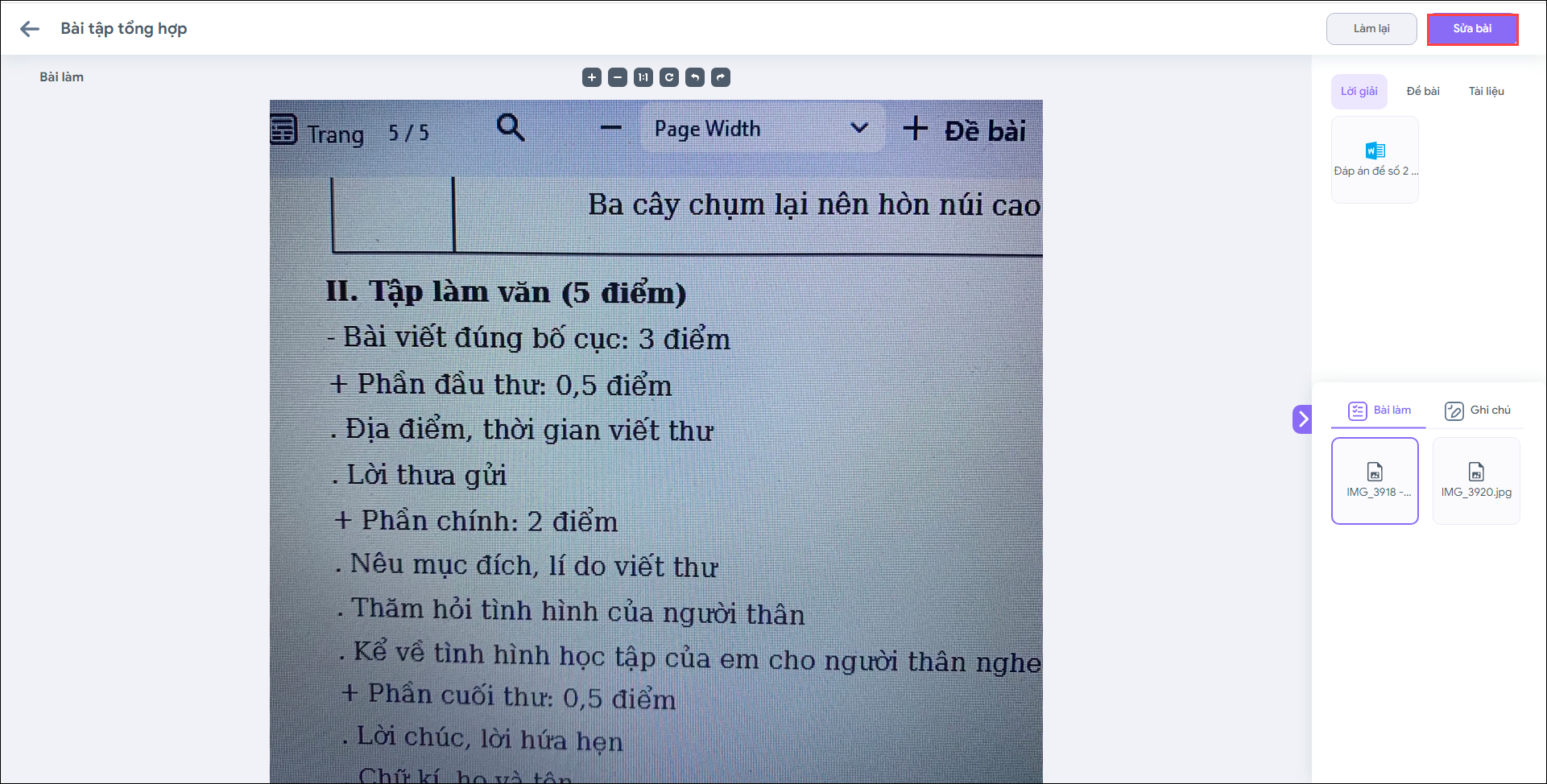 - Trường hợp giáo viên cho phép học sinh chỉnh sửa lại bài sau khi nộp, học sinh có thể bổ sung ảnh hoặc chỉnh sửa câu trả lời theo hướng dẫn sau: