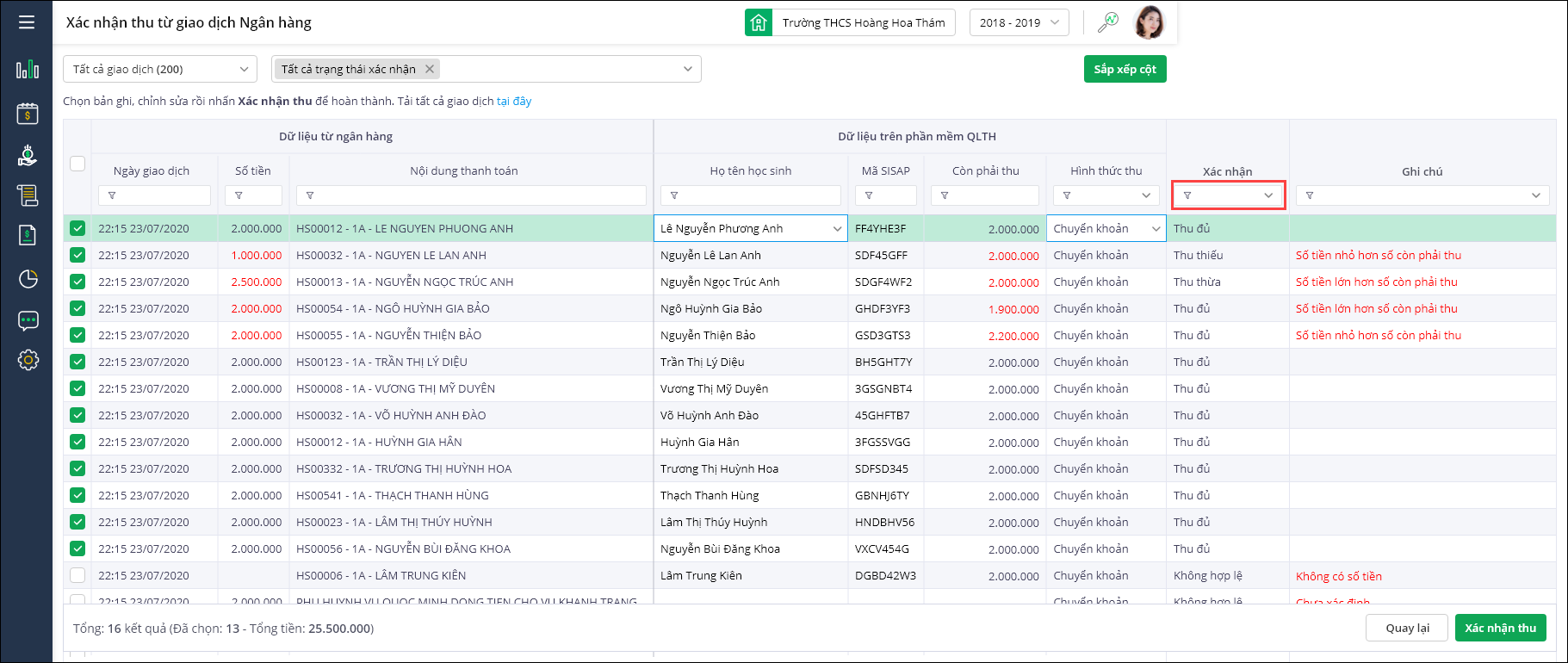 Xem hướng dẫn chi tiết xác nhận thu từ giao dịch ngân hàng tại đây.