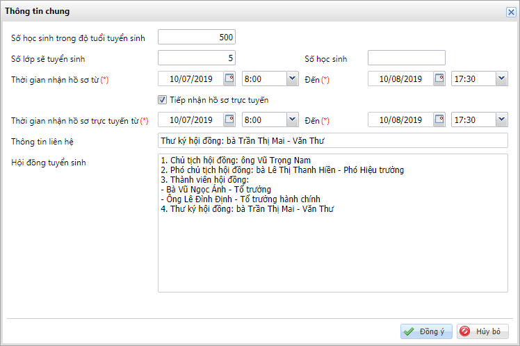 Lưu ý: Nếu trên màn hình Thông tin chung tích chọn mục “Tiếp nhận hồ sơ trực tuyến” thì sau khi nhấn Đồng ý: trên website của trường,