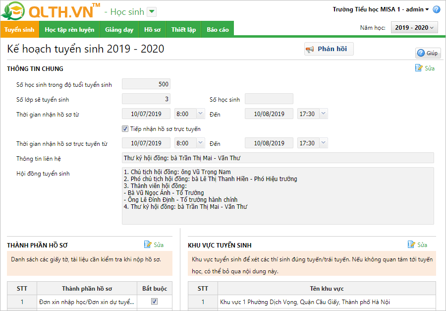 Cho phép Hiệu trưởng Lập, Sửa kế hoạch tuyển sinh cho năm học mới