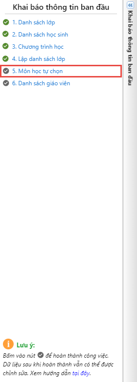 Lưu ý: Sau khi lập xong kế hoạch dạy môn tự chọn, cần phải xác nhận hoàn thành đối với kế hoạch đã lập bằng cách nhấn vào biểu tượng