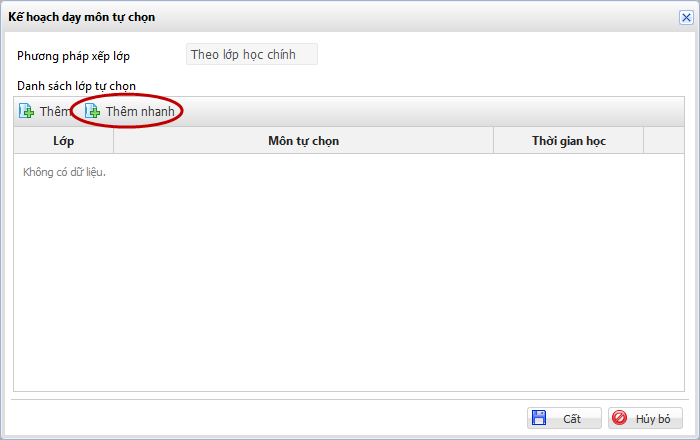 Cho phép lập kế hoạch dạy các môn học ngoài các môn thuộc phân phối chương trình do Bộ Giáo dục & đào tạo quy định. Đồng thời, thực hiện xếp các lớp đăng ký học môn học tự chọn.