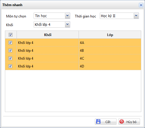 - Chọn môn tự chọn, thời gian học và khối lớp sẽ học