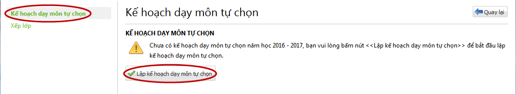 3. Nhấn Lập kế hoạch dạy môn tự chọn.