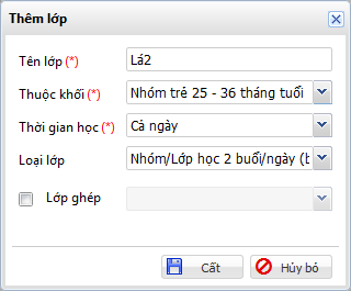 3,… (VD: Mầm 1, Mầm 2, Mầm 3). Thực hiện nhập Tên lớp bắt đầu bằng Mầm, Tăng