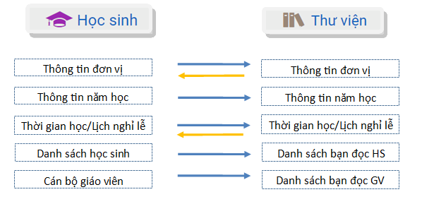 Tương tác dữ liệu trường hợp sử dụng cả Phân hệ Học sinh với Phân hệ Thư viện như sau: