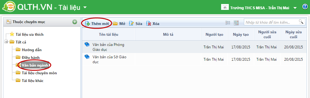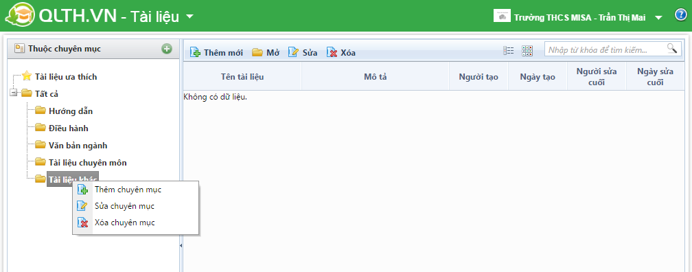 Bước 1: Tạo chuyên mục quản lý các tài liệu