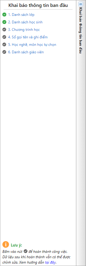 Lưu ý: Sau khi khai báo xong danh sách học sinh, cần phải xác nhận hoàn thành bằng cách nhấn vào biểu tượng  tại tab 2. Danh sách học sinh.