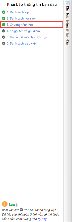 Lưu ý: Sau khi khai báo xong chương trình học, cần phải xác nhận hoàn thành bằng cách nhấn vào biểu tượng