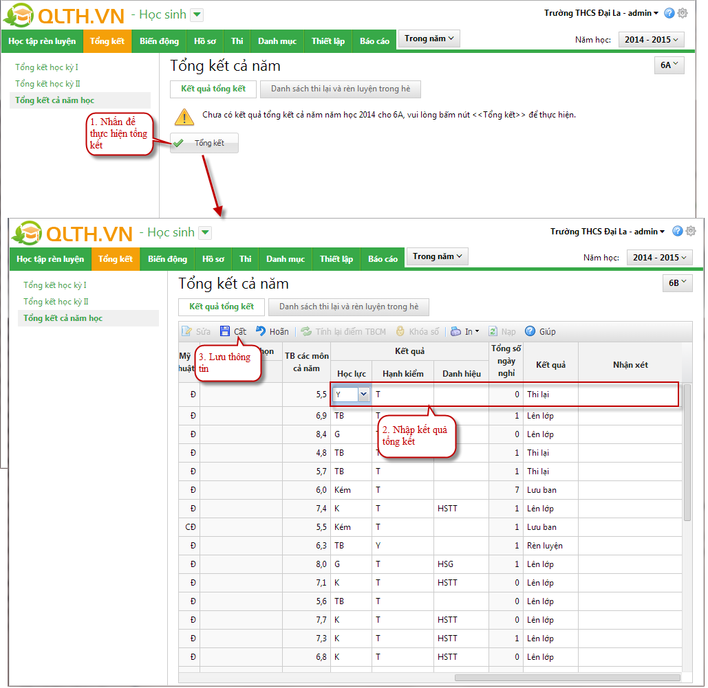 Cho phép giáo viên thực hiện tổng kết quá trình học tập và rèn luyện của học sinh trong cả năm học, lập danh sách các học sinh thi lại và rèn luyện trong hè vào cuối năm.