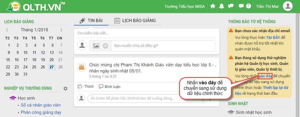 Sau quá trình triển khai thử nghiệm, các dữ liệu nhập vào là các dữ liệu chính thức của đơn vị. Để dùng luôn các dữ liệu này làm dữ liệu sử dụng chính thức của đơn vị thì phải thực hiện như sau: