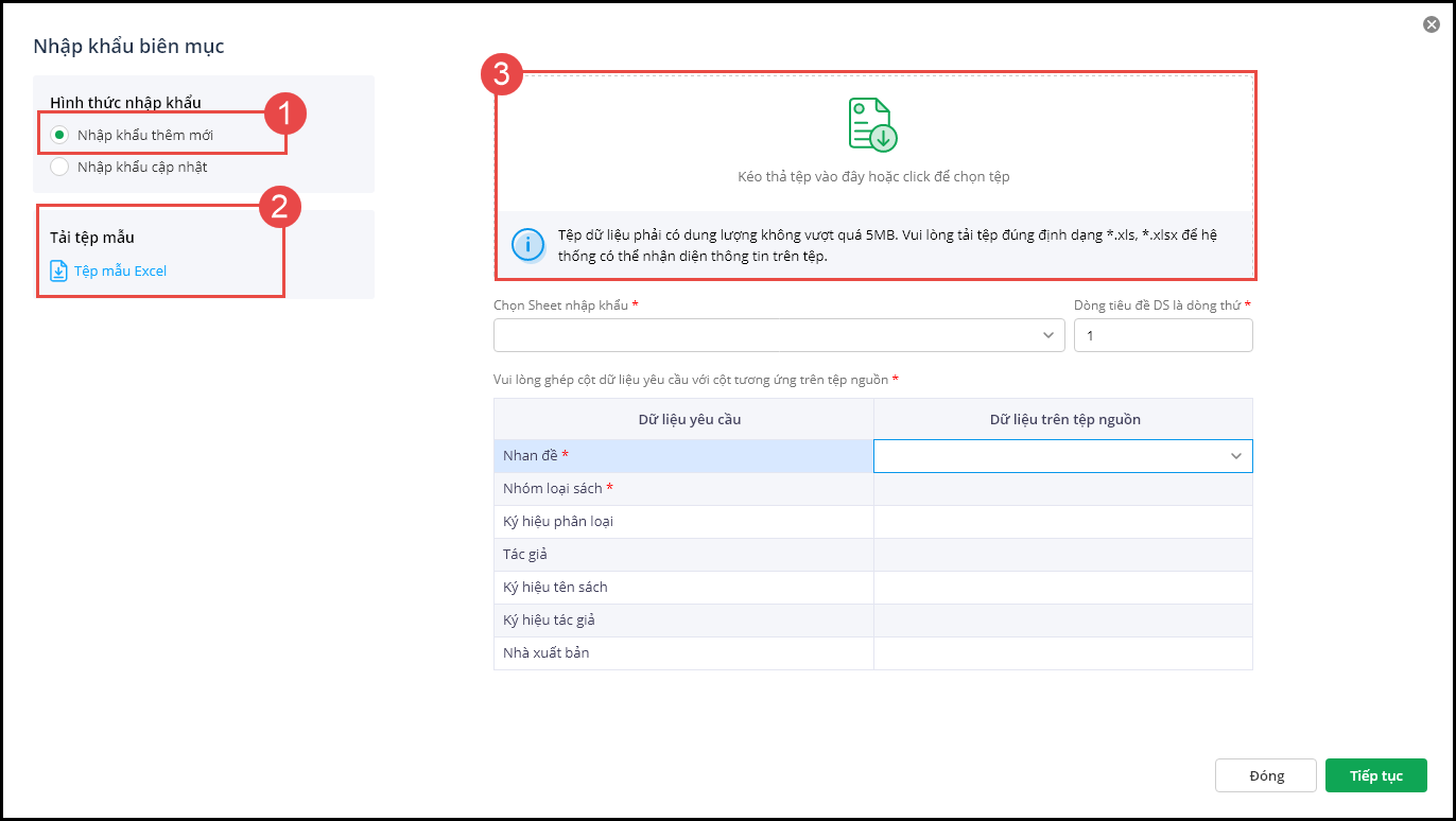Nhập khẩu thêm mới: Thêm mới các biên mục đang quản lý trên excel vào quản lý tiếp trên phần mềm.