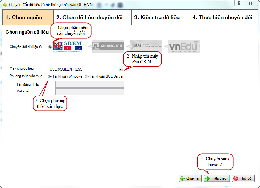 Thực hiện 4 bước chuyển đổi dữ liệu từ phần mềm SREM sang phần mềm QLTH.VN
