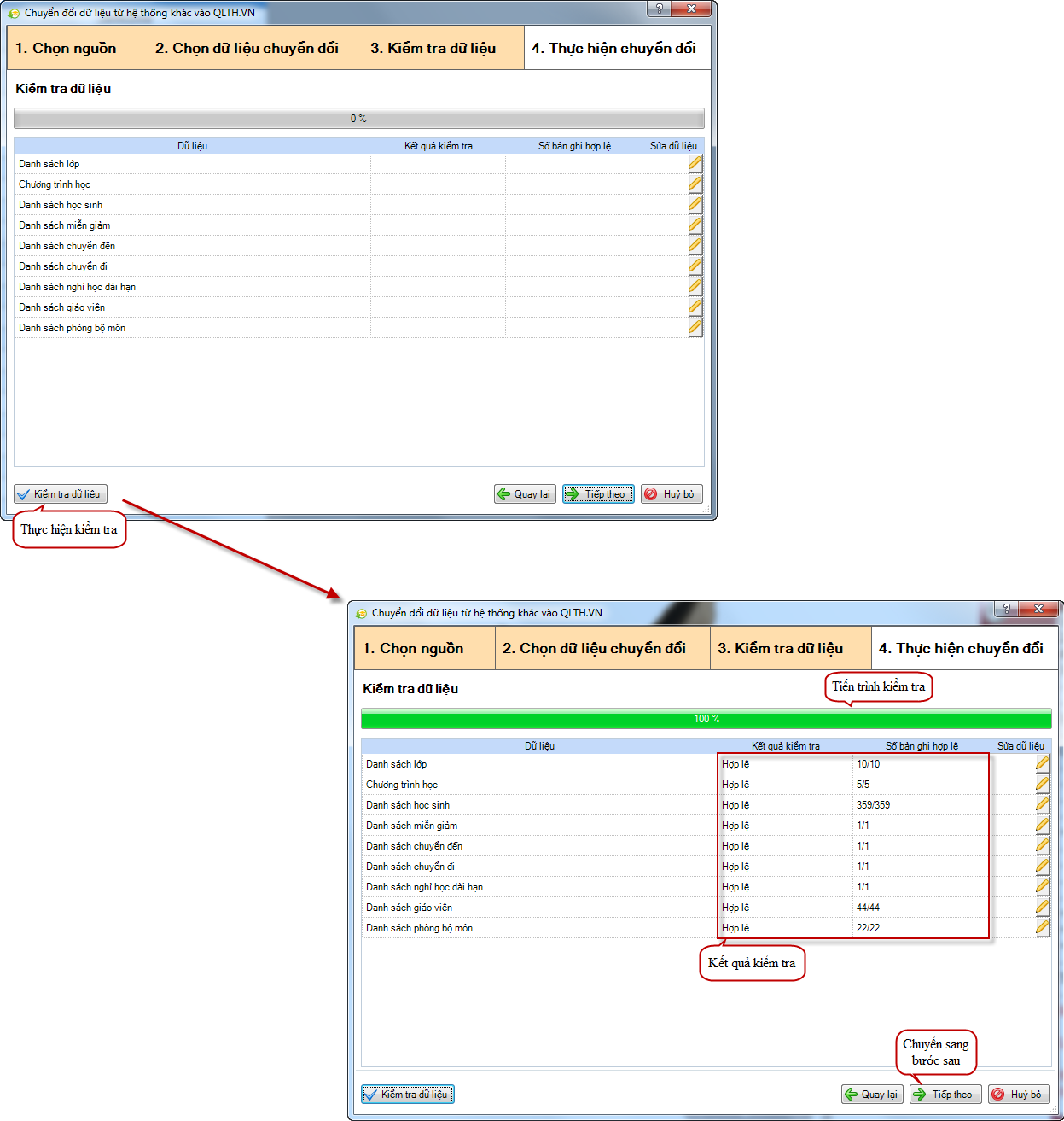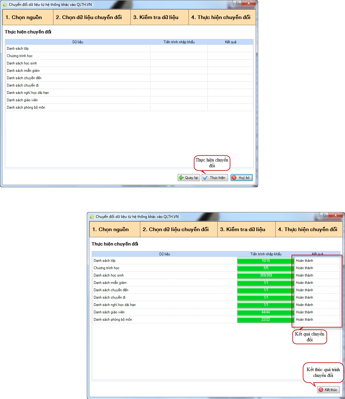 - Bước 4: Thực hiện chuyển đổi dữ liệu và kiểm tra kết quả chuyển đổi