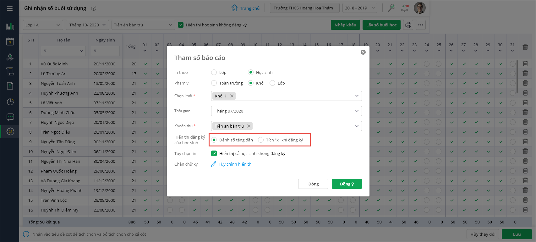 - Lựa chọn cách thức hiển thị đăng ký của học sinh theo nhu cầu của đơn vị:
