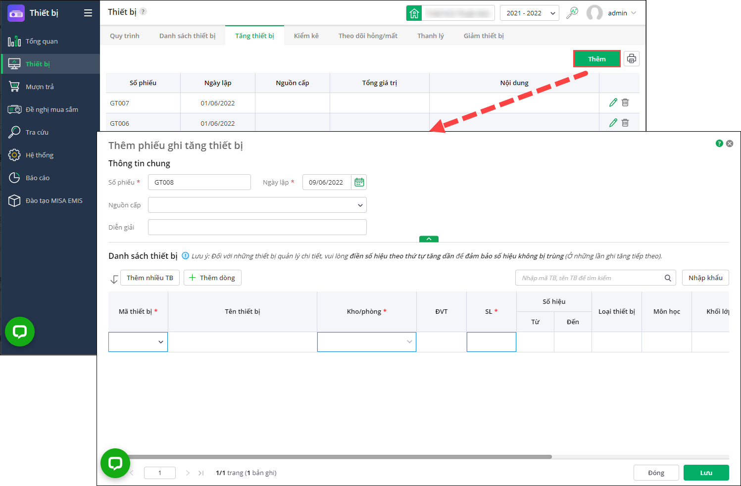 Cách 2: Khai báo thiết bị vào danh mục thiết bị giáo dục và tự ghi tăng thiết bị