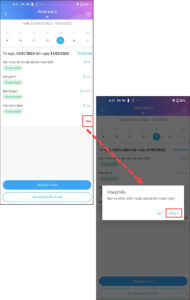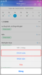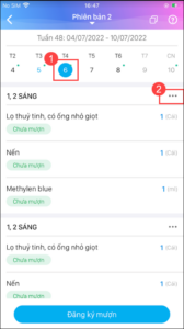- Chọn ngày đăng ký mượn thiết bị, nhấn vào biểu tượng dấu ba chấm tại tiết học cần chỉnh sửa thông tin phiếu mượn.
