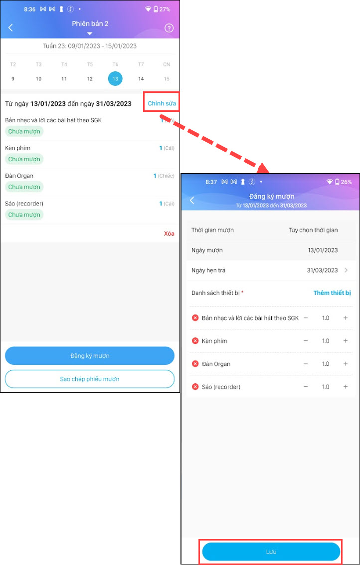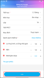 - Nhấn Lưu để cập nhật danh sách thiết bị mượn trong ngày.