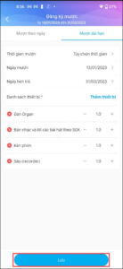 - Nhập các thông tin còn trống trên phiếu đăng ký mượn ngày vừa được nhân bản, nhấn Lưu để lưu phiếu mượn thiết bị.